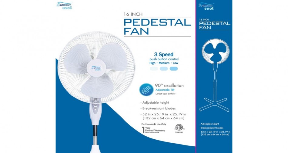 - Wide oscillating stand fan