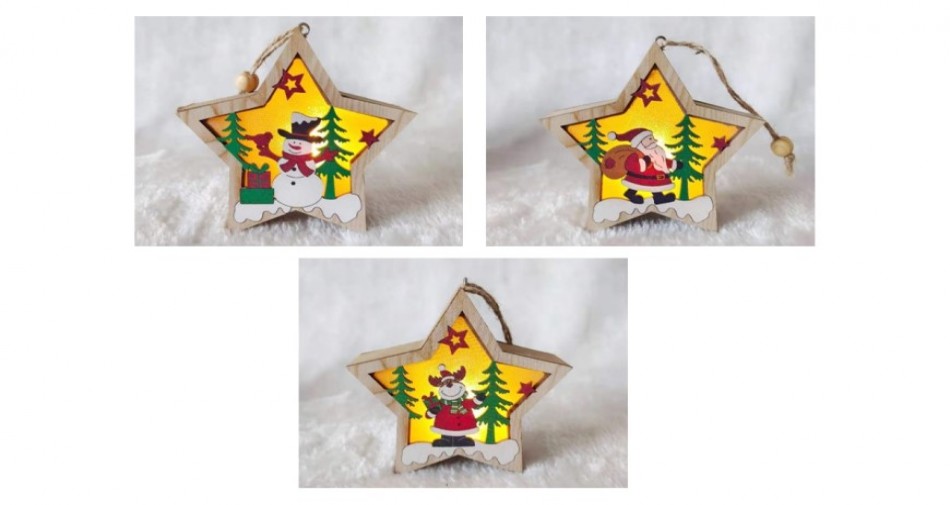 Battery Operated Christmas MDF LED Star Hanging Decoration