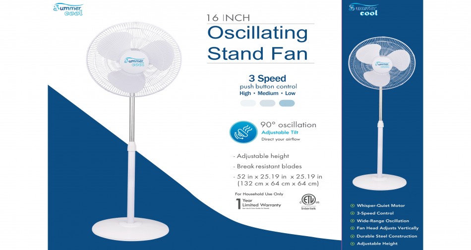 - Wide oscillating stand fan