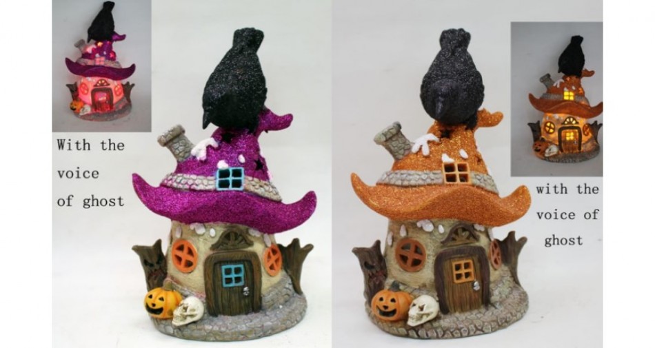 LED Lighted Halloween Resin House with Ghost Voice - RG07161017